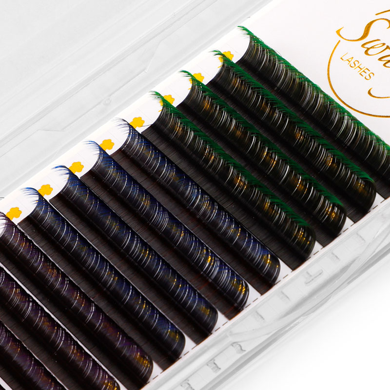Teg Panas: Kilang berwarna China berwarna, Swaniya Sambungan bulu mata berwarna -warni, bulu mata kosmetik OEM